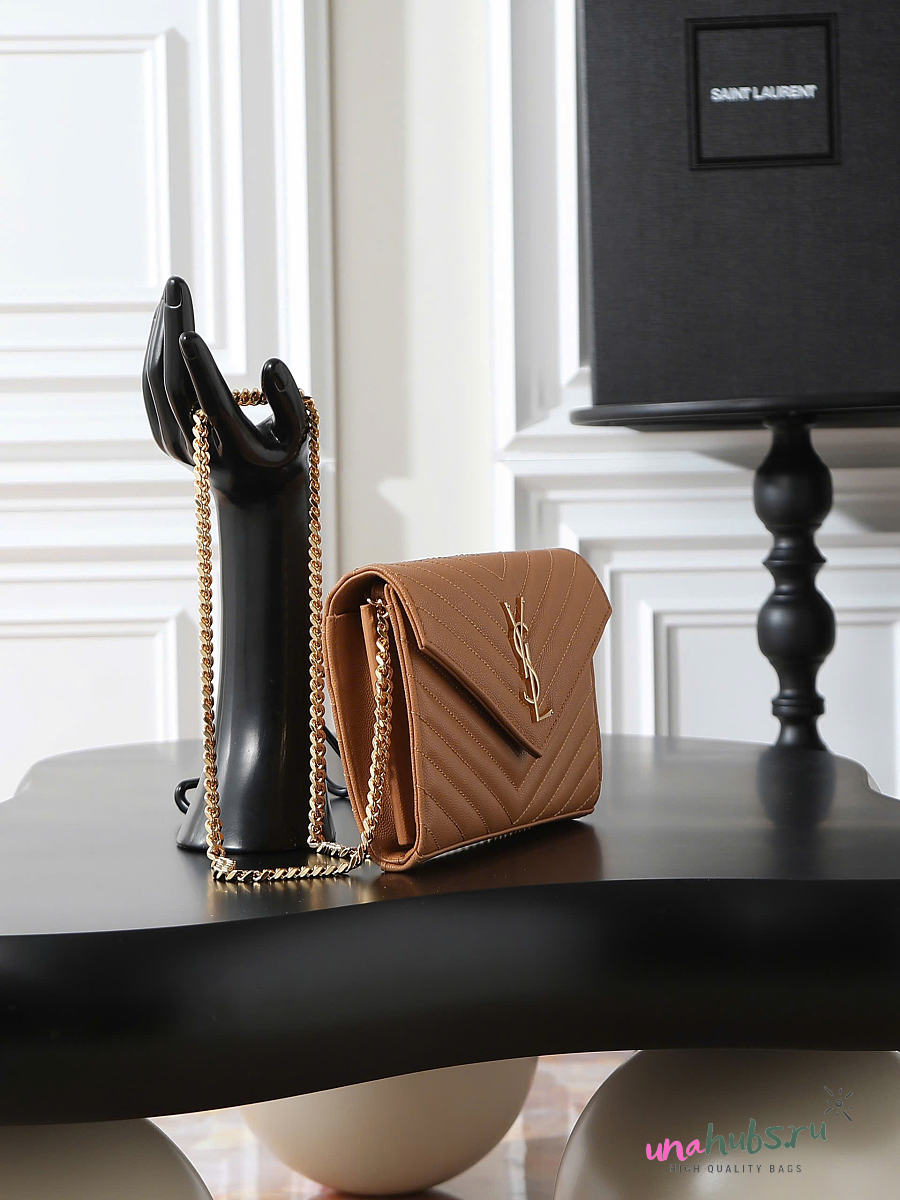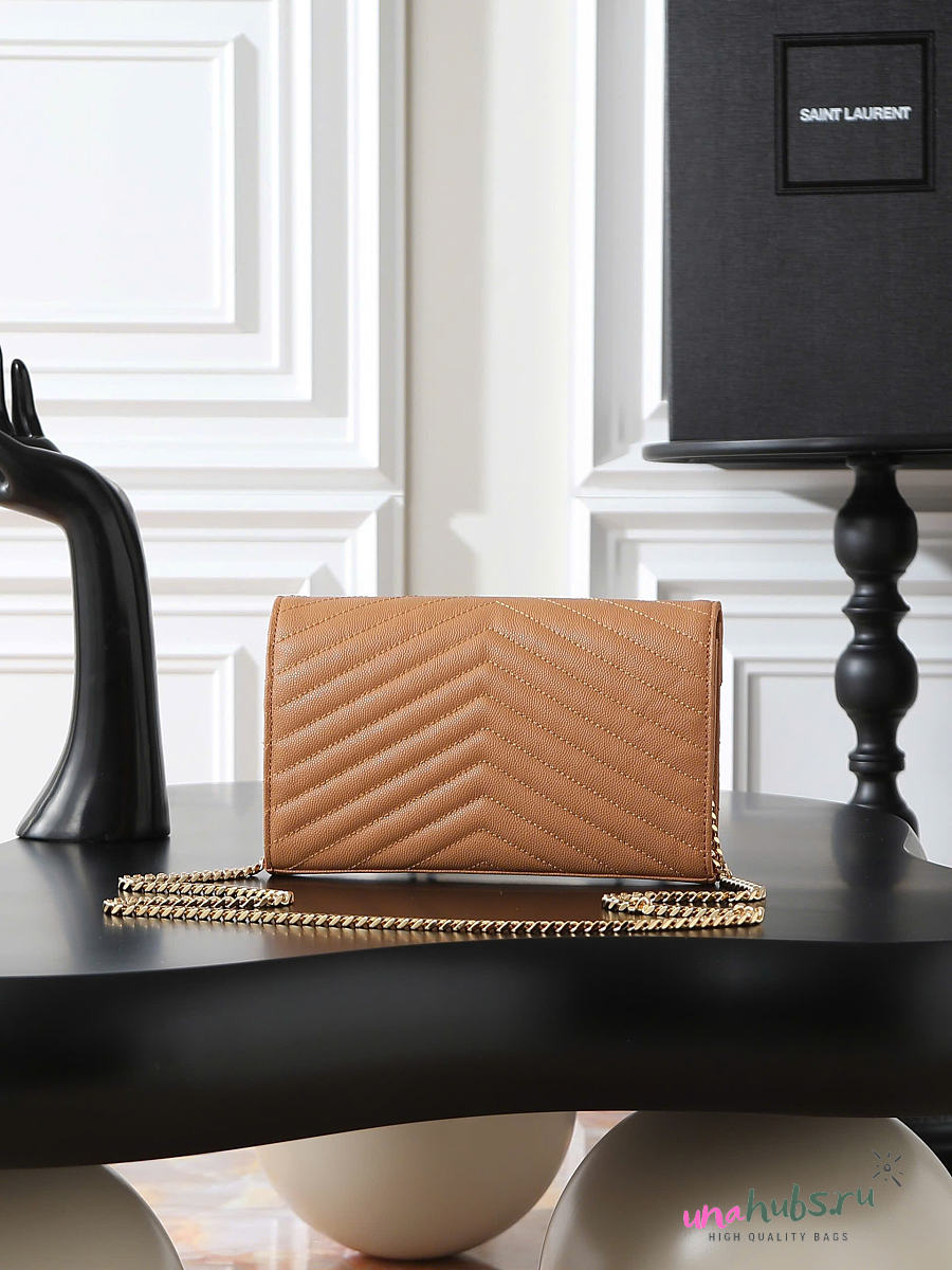 YSL Classic Cassandre Chain Wallet Caramel Grain leather 22.5x14x4c