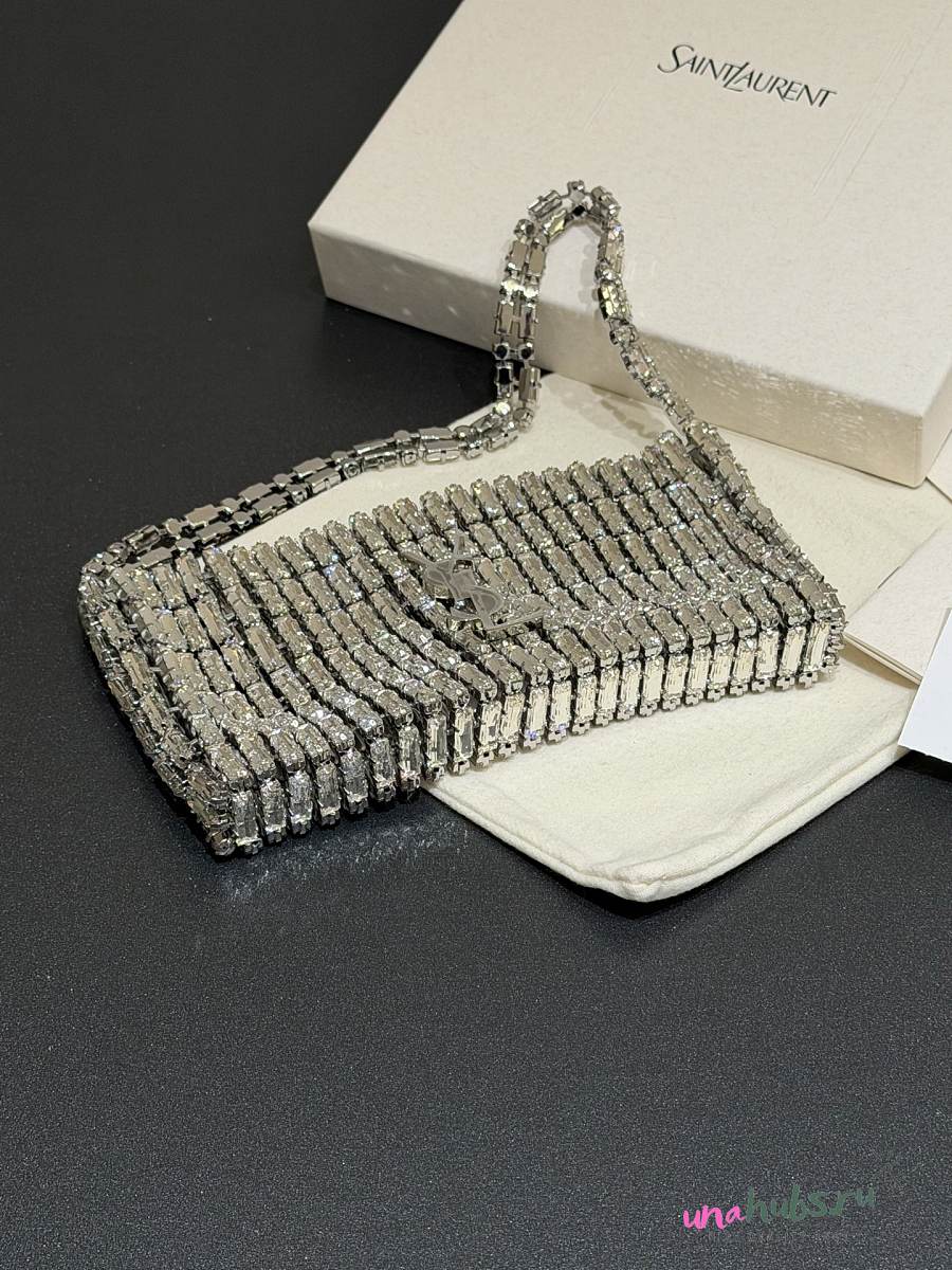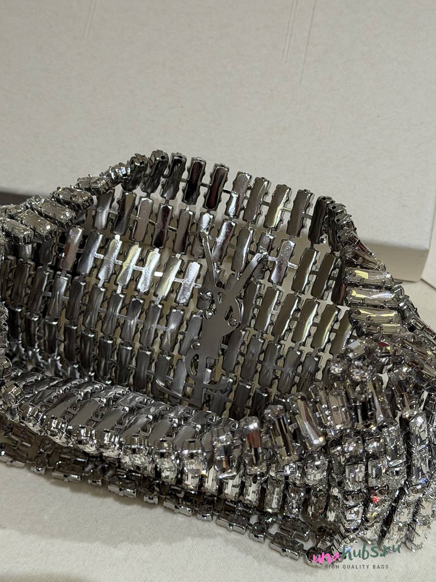 YSL EVENING bag in crystals silver 18x7.5x2.5cm