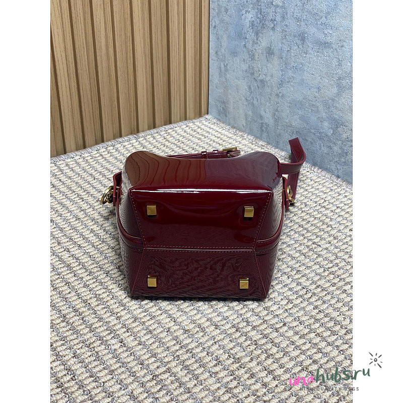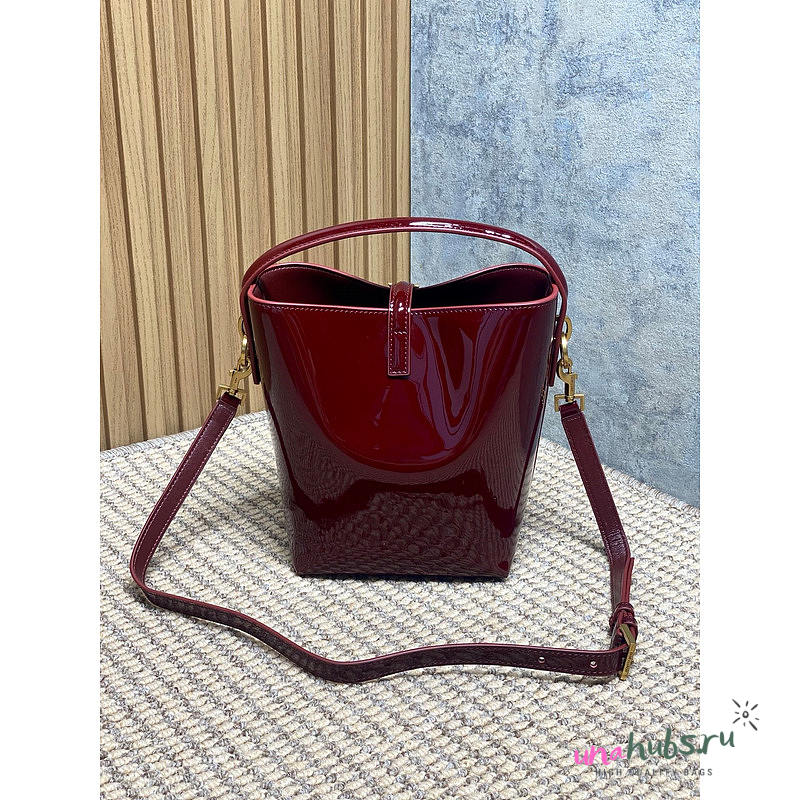 YSL Le 37 Small Bucket Bag In Patent Leather Burgundy 20x17x13cm
