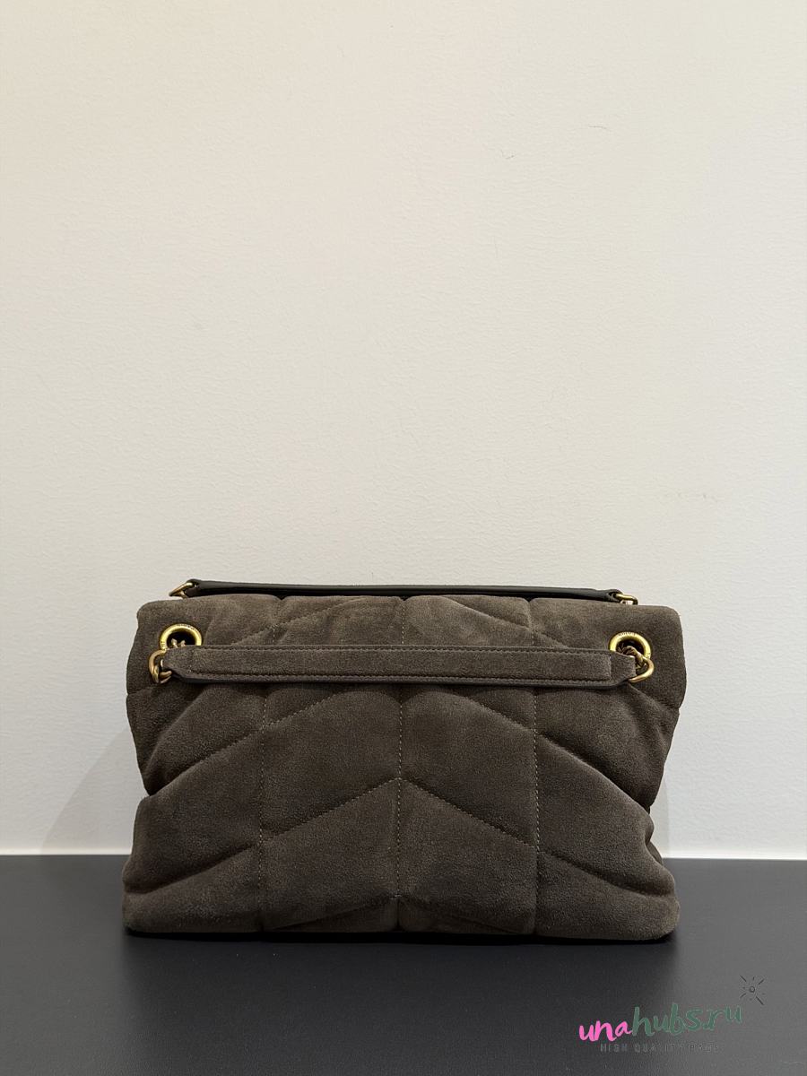 YSL Mini PUFFER suede dark brown-grey 23cm