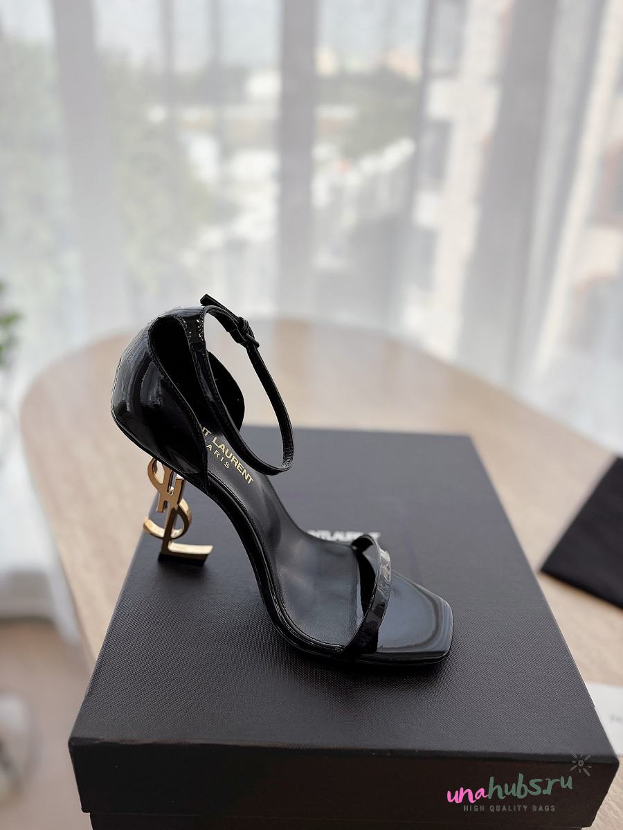 YSL Opyum Ankle Strap Sandal In Black Patent