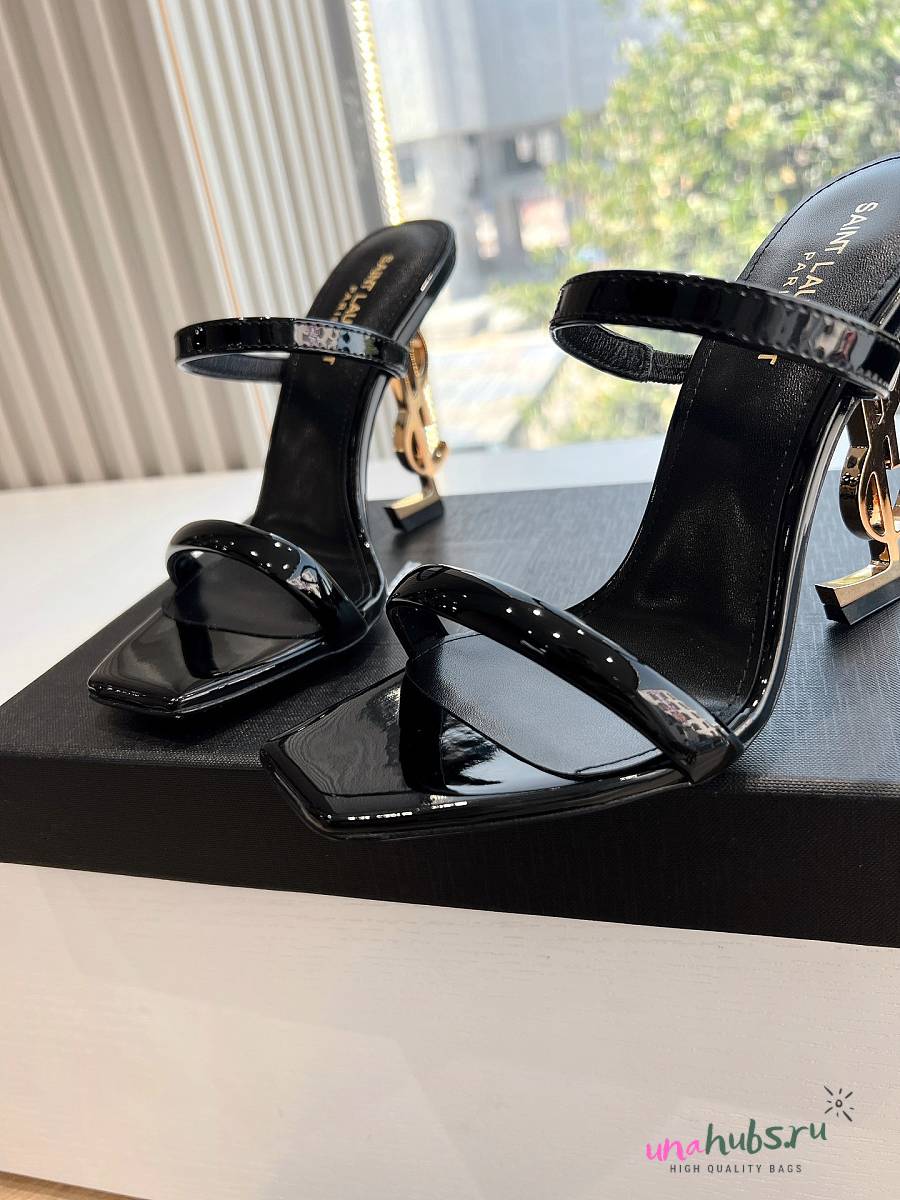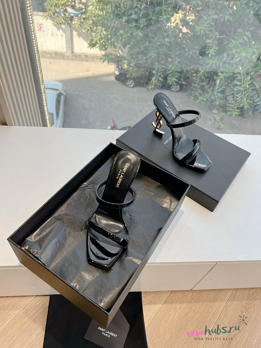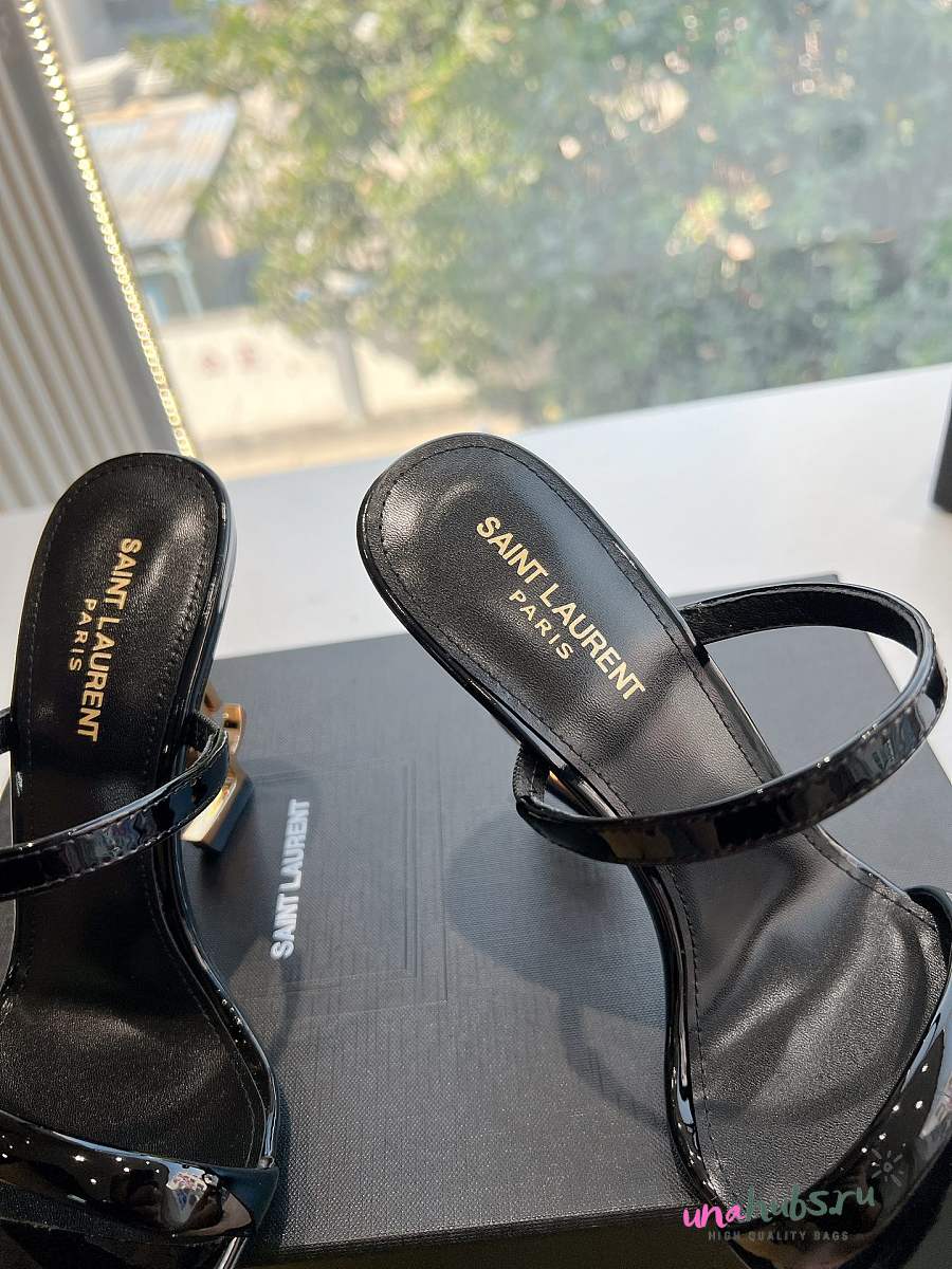 YSL Opyum Mules In Black Patent 110mm
