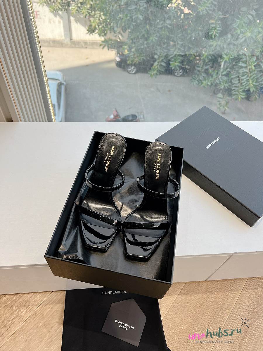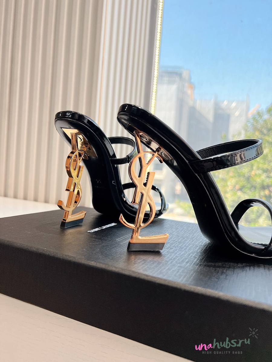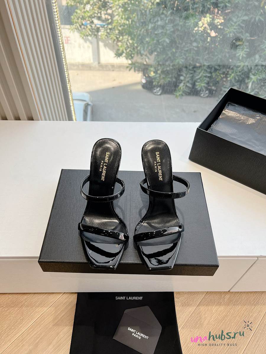 YSL Opyum Mules In Black Patent 110mm