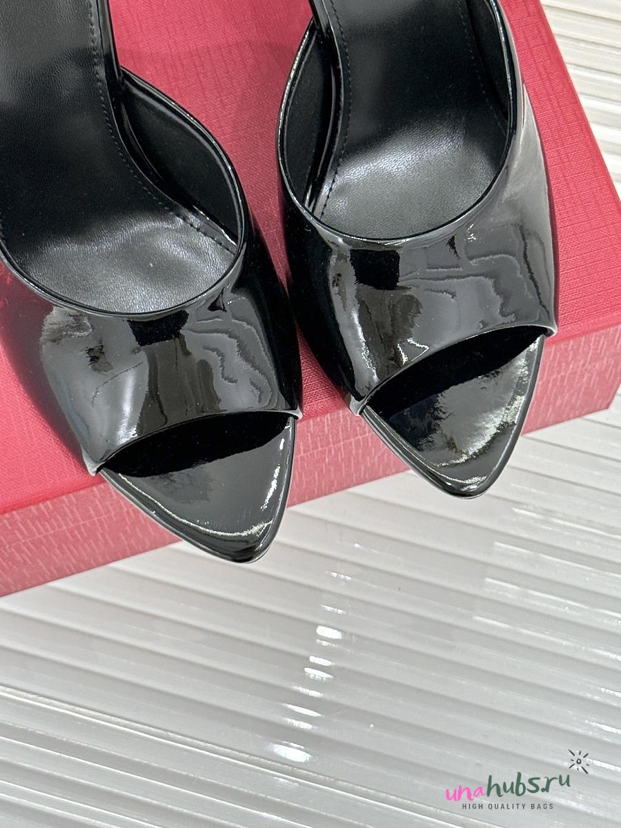 YSL Romy Mules In Patent Leather Black 9cm