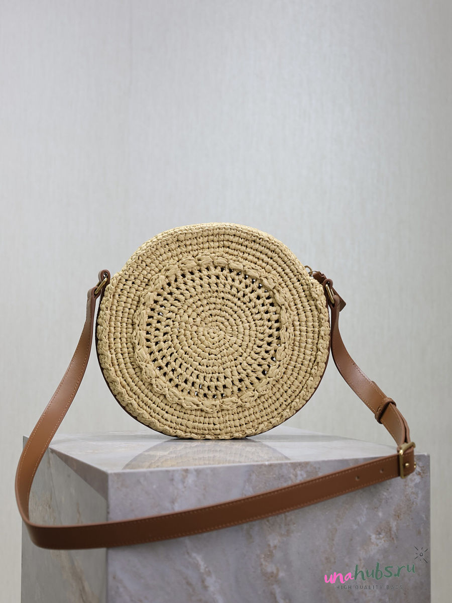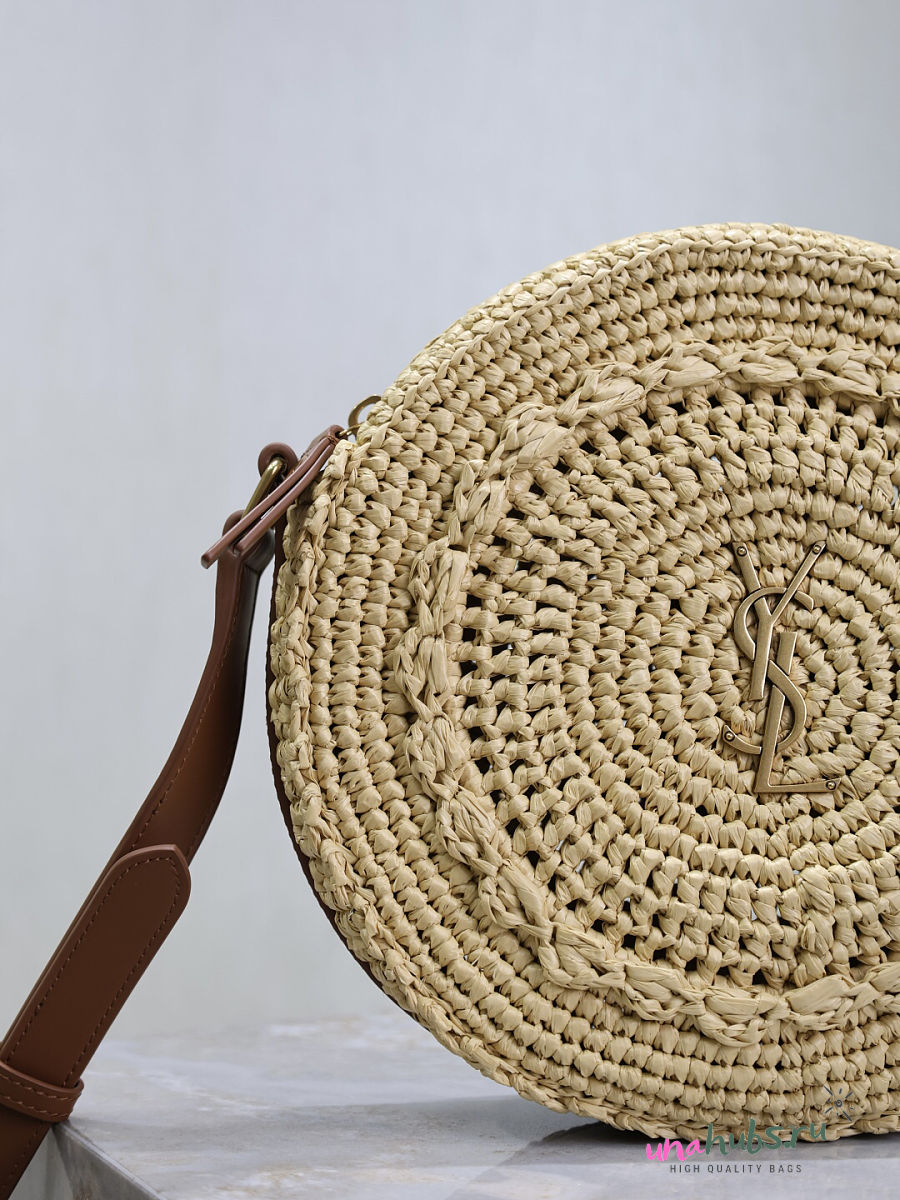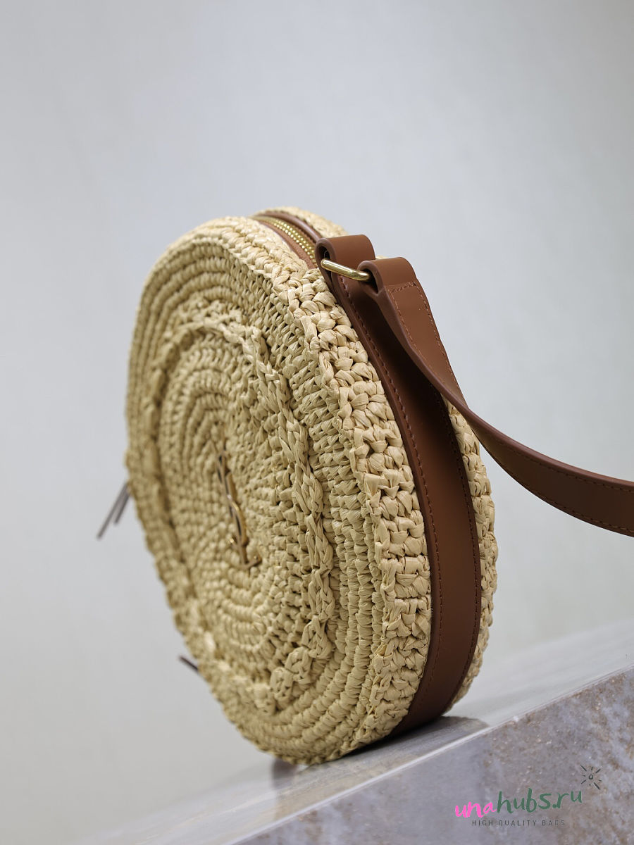 YSL Round Raffia Crossbody Bag 21x21x4cm - Unahubs